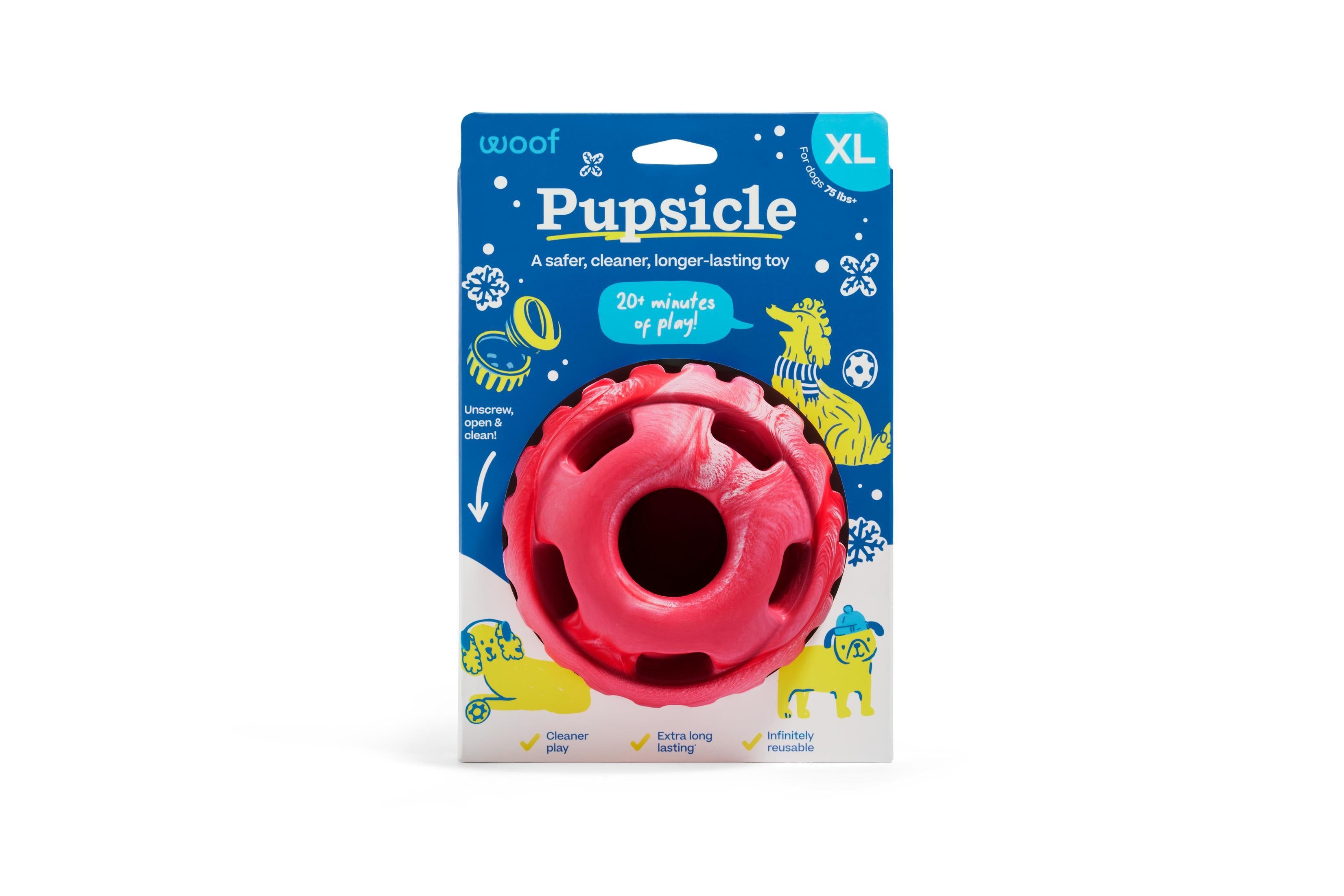 Your pooch will go crazy over the Pupsicle by Woof Pet. Simply fill the ball with Pupsicle Pops or the soft or frozen treat of your choice. Peanut butter, canned wet food, yogurt, fruit, and bone broth are just a few of the freezable fillings you can use.